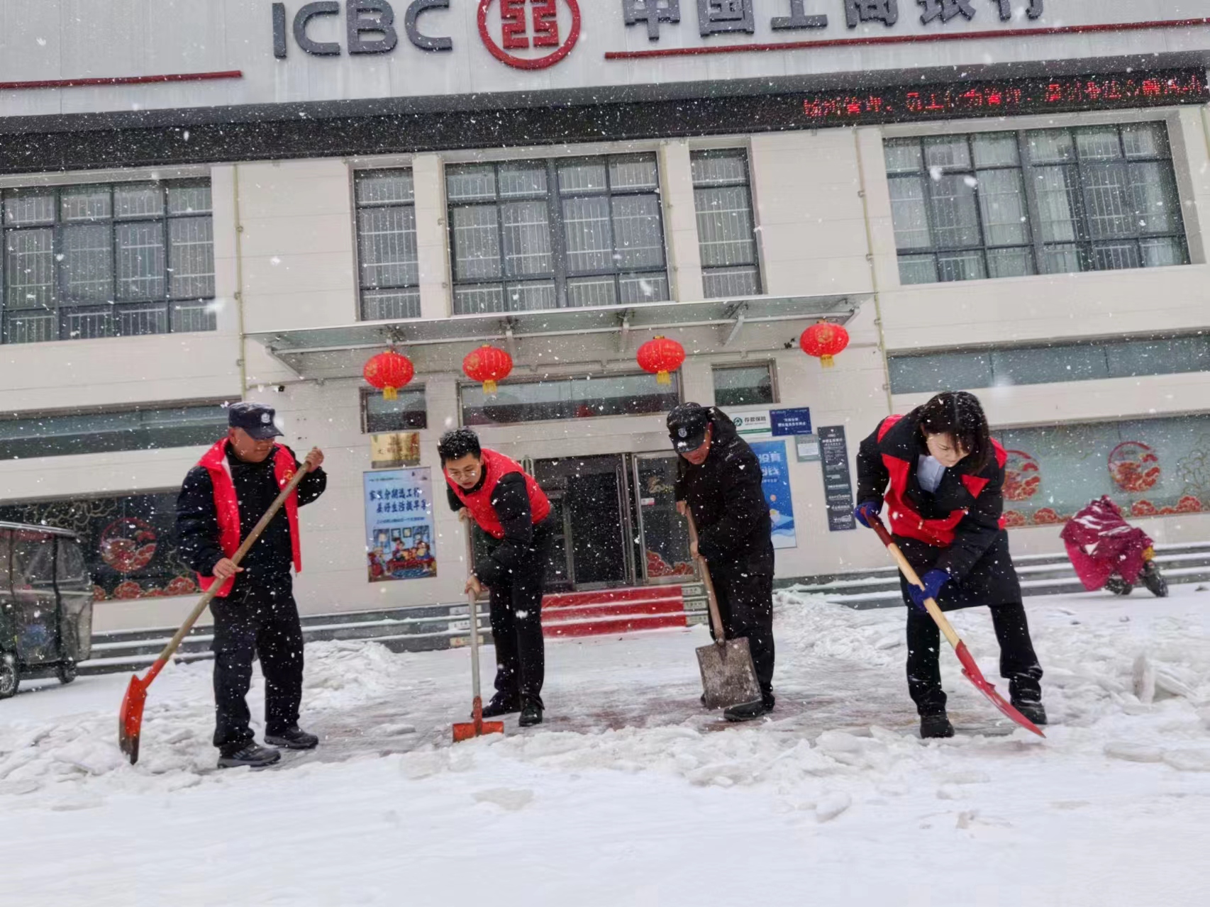 為全面應(yīng)對我市大范圍降溫雨雪天氣,工行周口分行以雪為令,積極響應(yīng)周口市文明辦清理積雪倡議,啟動應(yīng)急預(yù)案,嚴(yán)格按照市文明辦清理積雪,保障市民外出道路暢通工作部署,統(tǒng)籌協(xié)調(diào),組織轄內(nèi)各機(jī)構(gòu)發(fā)動黨員、志愿者全力參與門前三包道路清理積雪活動。該行各營業(yè)網(wǎng)點在營業(yè)前,組織志愿者通過拋撒融雪劑、清掃鏟除分包路段及門店前積雪,清理出一條條便民通道,保障市民和客戶暢通出行。同時,各營業(yè)網(wǎng)點在門前鋪設(shè)防滑設(shè)施,為客戶到網(wǎng)點辦理業(yè)務(wù)提供安全保障。