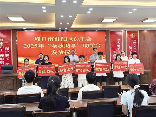 8月20日上午,淮陽(yáng)區(qū)總工會(huì)舉行2025年“金秋助學(xué)”助學(xué)金發(fā)放儀式,為18名考上大學(xué)的困難職工子女每人發(fā)放“金秋助學(xué)”助學(xué)金3000元。記者 侯俊豫 通訊員 張艷榮 攝