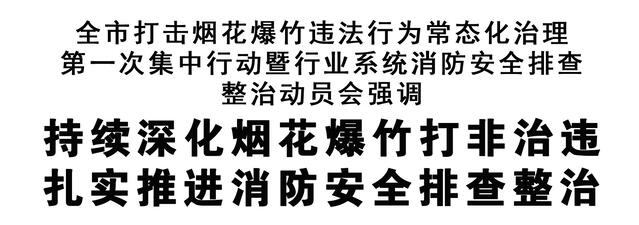 會(huì)議指出,安全重于泰山。各級(jí)各部門(mén)要準(zhǔn)確把握我市當(dāng)前煙花爆竹和消防安全的嚴(yán)峻形勢(shì),深刻汲取事故慘痛教訓(xùn),時(shí)刻繃緊思想之弦,緊盯系統(tǒng)性風(fēng)險(xiǎn)和機(jī)制性問(wèn)題,持續(xù)深化煙花爆竹打非工作,扎實(shí)推進(jìn)消防安全排查整治,最大限度防范遏制各類事故發(fā)生,全力保障人民群眾生命財(cái)產(chǎn)安全和社會(huì)大局穩(wěn)定。
