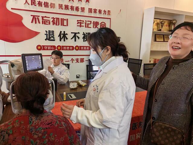 活動現(xiàn)場設置視力檢測區(qū)、眼底篩查區(qū)等功能區(qū)域,醫(yī)護人員為老同志進行全面眼部健康檢查和評估,重點篩查白內(nèi)障、青光眼等老年高發(fā)眼病,并現(xiàn)場為老同志講解有關眼健康防護知識。針對檢測中發(fā)現(xiàn)的疑似白內(nèi)障患者及其他眼疾者,醫(yī)護團隊現(xiàn)場建立健康檔案并預約復診通道,使受檢者有所醫(yī)、有所治,彰顯人文關懷。