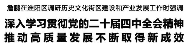 本報訊 (記者 李鳳霞 何晴) 10月29日,市長詹鵬到淮陽區(qū)調(diào)研歷史文化街區(qū)建設(shè)和產(chǎn)業(yè)發(fā)展工作,強調(diào)要深入學(xué)習(xí)貫徹黨的二十屆四中全會精神,扎實推進產(chǎn)業(yè)高質(zhì)量發(fā)展,鞏固壯大實體經(jīng)濟根基,奮力譜寫中原大地推進中國式現(xiàn)代化周口新篇章。張建黨、王文峰參加調(diào)研。