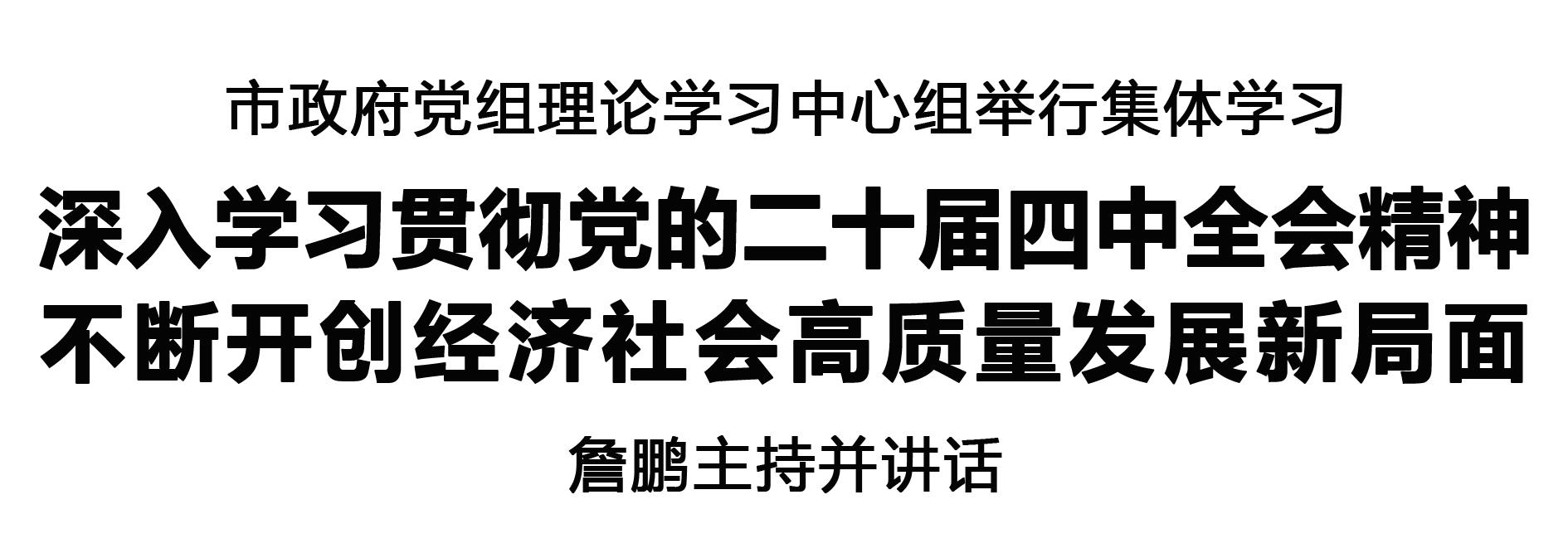 本報(bào)訊(記者 李鳳霞) 11月14日,市政府黨組理論學(xué)習(xí)中心組舉行集體學(xué)習(xí)研討,深入學(xué)習(xí)貫徹黨的二十屆四中全會(huì)精神。市長(zhǎng)、市政府黨組書(shū)記詹鵬主持并講話。