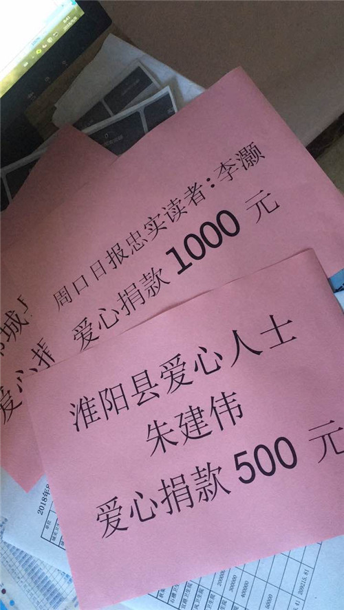 報(bào)道發(fā)出后,鄲城縣衛(wèi)計(jì)委主任付登霄第一時(shí)間作出響應(yīng),批復(fù)2000元錢資助趙家,囑咐駐村干部不能因家庭特困而導(dǎo)致孩子輟學(xué),付登霄表示將長期關(guān)注這個(gè)貧困家庭;周口日報(bào)忠實(shí)讀者李灝遠(yuǎn)在上海,看到報(bào)道后立即通過本報(bào)記者給趙家匯款1000元;淮陽愛心人士朱建偉愛心捐款500元;寧平鎮(zhèn)中心校正在組織教職員工捐款……
