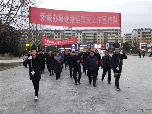 會后,黨工委書記張玉杰、辦事處主任王一博帶隊組織全體干部舉著橫幅,帶著紅袖標徒步10多公里,到鹿鼎建材城、農(nóng)貿(mào)市場、世紀廣場、丁老家、張?zhí)枠?、羅堂社區(qū)等重點區(qū)域進行宣傳。