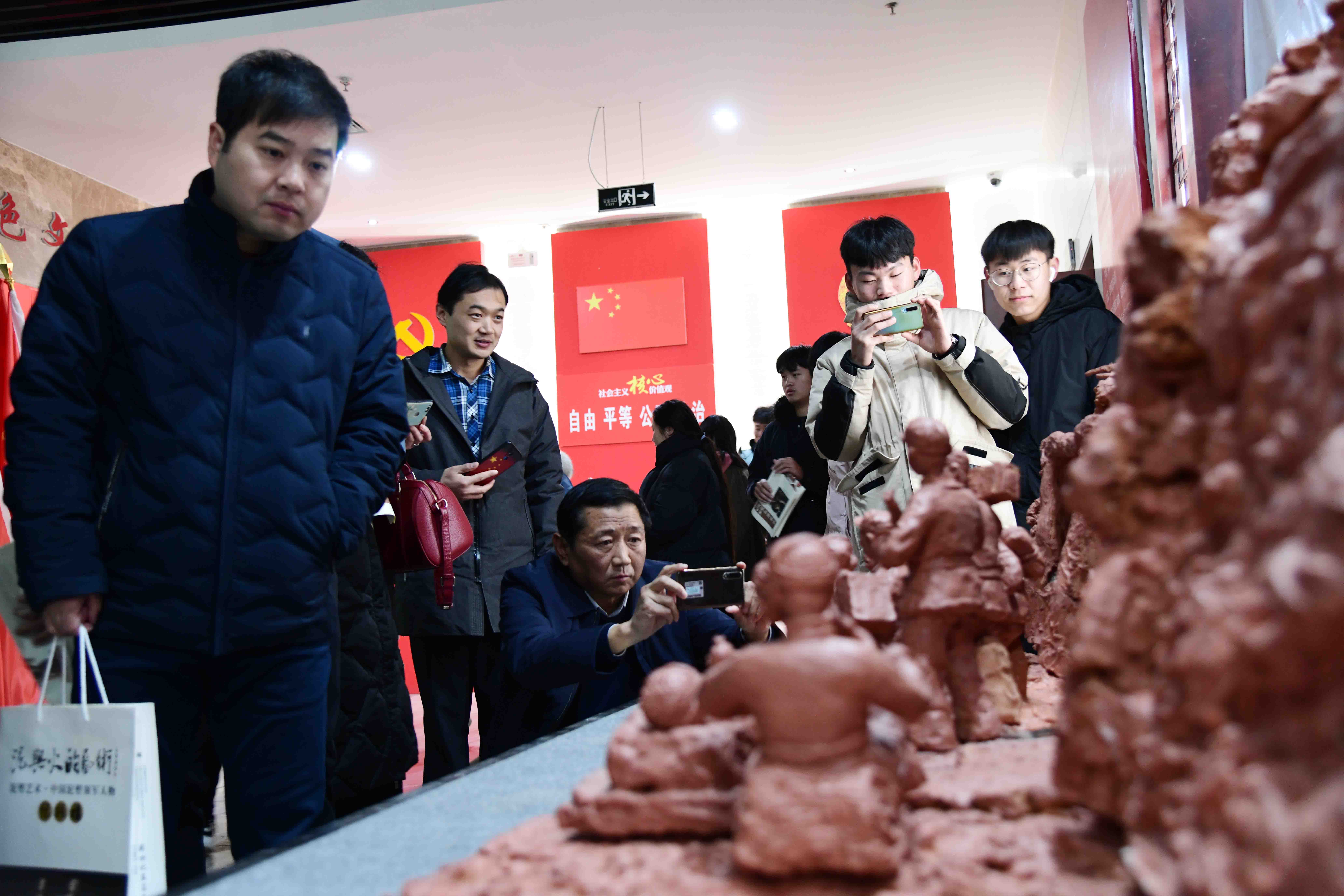 12月26日上午,由市委宣傳部、市文聯(lián)主辦,鄲城縣委宣傳部、鄲城縣文聯(lián)、周口民間文藝家協(xié)會(huì)承辦,市博物館、市非物質(zhì)文化遺產(chǎn)保護(hù)協(xié)會(huì)協(xié)辦的2019年度周口市文藝精品創(chuàng)作工程重點(diǎn)項(xiàng)目“張振福‘烽火年代’鈞瓷泥塑藝術(shù)展”在周口市文化藝術(shù)中心開展,共展出我市工藝美術(shù)大師、雕塑家張振福150多幅鈞瓷泥塑藝術(shù)品,這些很接地氣的作品藝術(shù)性地再現(xiàn)了中原農(nóng)耕時(shí)代生活圖景,反映了底層勞動(dòng)人民淳樸、善良、樂觀的精神世界。