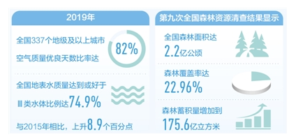 5年砥礪前行,污染防治攻堅戰(zhàn)全面推進。截至2019年底,“十三五”規(guī)劃綱要確定的生態(tài)環(huán)境領(lǐng)域9項約束性指標,有8項已提前完成。天藍水凈地綠的美麗中國正向我們走來。