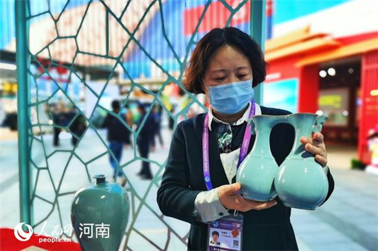 在非遺展示區(qū),河南帶來的汝瓷、絞胎瓷、懷山藥古法炮制技藝,引得客商們駐足關(guān)注。汝瓷燒制技藝代表性傳承人王振芳帶來了200多件展品,希望通過進博會,讓世界更了解中國名瓷,河南名瓷。
