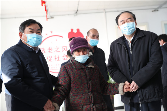太康縣大許寨格花里行政村居村聯(lián)養(yǎng)點(diǎn)占地5畝,入住特困老人80余人,社會(huì)留守老人3人,老人們?cè)谶@里有吃有穿還有娛樂活動(dòng),生活得十分幸福。徐濟(jì)超一行走進(jìn)大許寨鎮(zhèn)葛花李居村聯(lián)養(yǎng)點(diǎn),向老人們祝賀新春。徐濟(jì)超指出,各級(jí)各部門要始終堅(jiān)持以人民為中心的發(fā)展思想,踐行初心使命,聚焦群眾冷暖,用足用好惠民政策,千方百計(jì)幫助群眾解決實(shí)際問題,讓群眾老有所養(yǎng)、病有所醫(yī)、住有所居,讓大家共享改革發(fā)展成果,確保讓廣大群眾過個(gè)歡樂祥和的新春佳節(jié)。