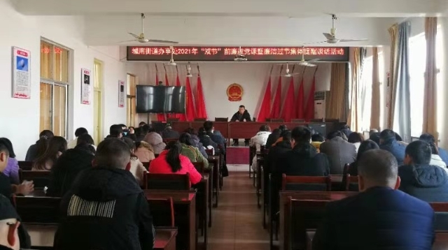 在春節(jié)、元宵節(jié)即將來臨之際,川匯區(qū)城南街道辦事處開展2021年“雙節(jié)”前廉政黨課暨廉潔過節(jié)集體談話活動,要求黨員干部增強廉潔自律意識、筑牢思想防線,確保過一個風清氣正的“雙節(jié)”。