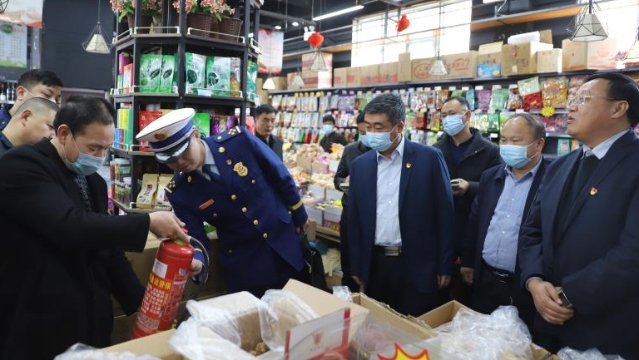 為落實河南省煙花爆竹禁售禁放工作電視電話會議和全市煙花爆竹禁售禁放暨春節(jié)期間污染防治工作會議精神,做好春節(jié)期間火災預防、煙花爆竹禁售禁放工作,確保節(jié)日期間物資供應充足、市場秩序持續(xù)穩(wěn)定,2月9日,周口港區(qū)黨委書記孫鵬前往轄區(qū)居民社區(qū)、市場督導春節(jié)期間各項保障工作落實情況。港區(qū)黨委委員杜廣賢、公安分局局長康群泉陪同。