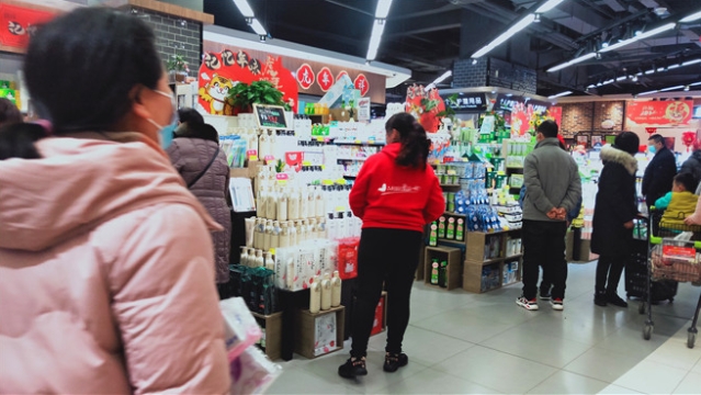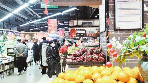春節(jié)日益臨近,我市中心城區(qū)的各大超市充滿了濃濃的年味兒。1月26日,記者走進一家超市看到,各類商品擺滿了貨架,糧油、糖品、干貨、生鮮、熟食、水果等品種豐富,一應俱全,過年的氛圍十分濃厚。