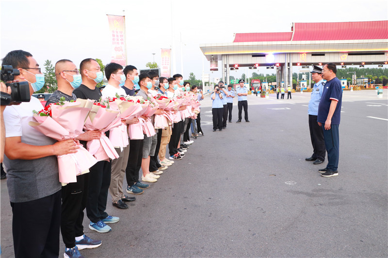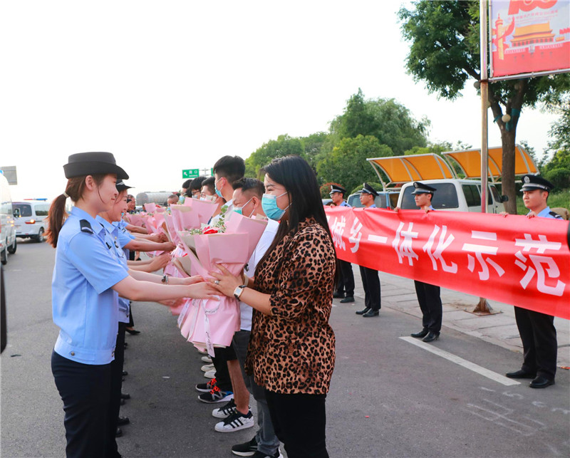 當(dāng)日19時許,示范區(qū)二級調(diào)研員丁有亮,示范區(qū)公安分局黨委書記、局長何學(xué)民等同志前往迎接,歡迎勝利歸來的抓捕民警。當(dāng)抓捕組車輛駛出高速路口時,現(xiàn)場響起熱烈的掌聲。丁有亮、何學(xué)民與參戰(zhàn)民警一一親切握手,對凱旋的民警表示歡迎和祝賀,民警代表將象征勝利和榮譽的鮮花獻給抓捕組民警。丁有亮表示向不辱使命、不畏艱險、勇打勝仗的參戰(zhàn)民警表示慰問,并要求他們把握戰(zhàn)機,繼續(xù)擴大戰(zhàn)果,再接再厲,再立新功。何學(xué)民指出,示范區(qū)公安分局將乘勢而上、提振士氣,縱深開展“迅雷”行動,出重拳打擊電信詐騙犯罪行為。