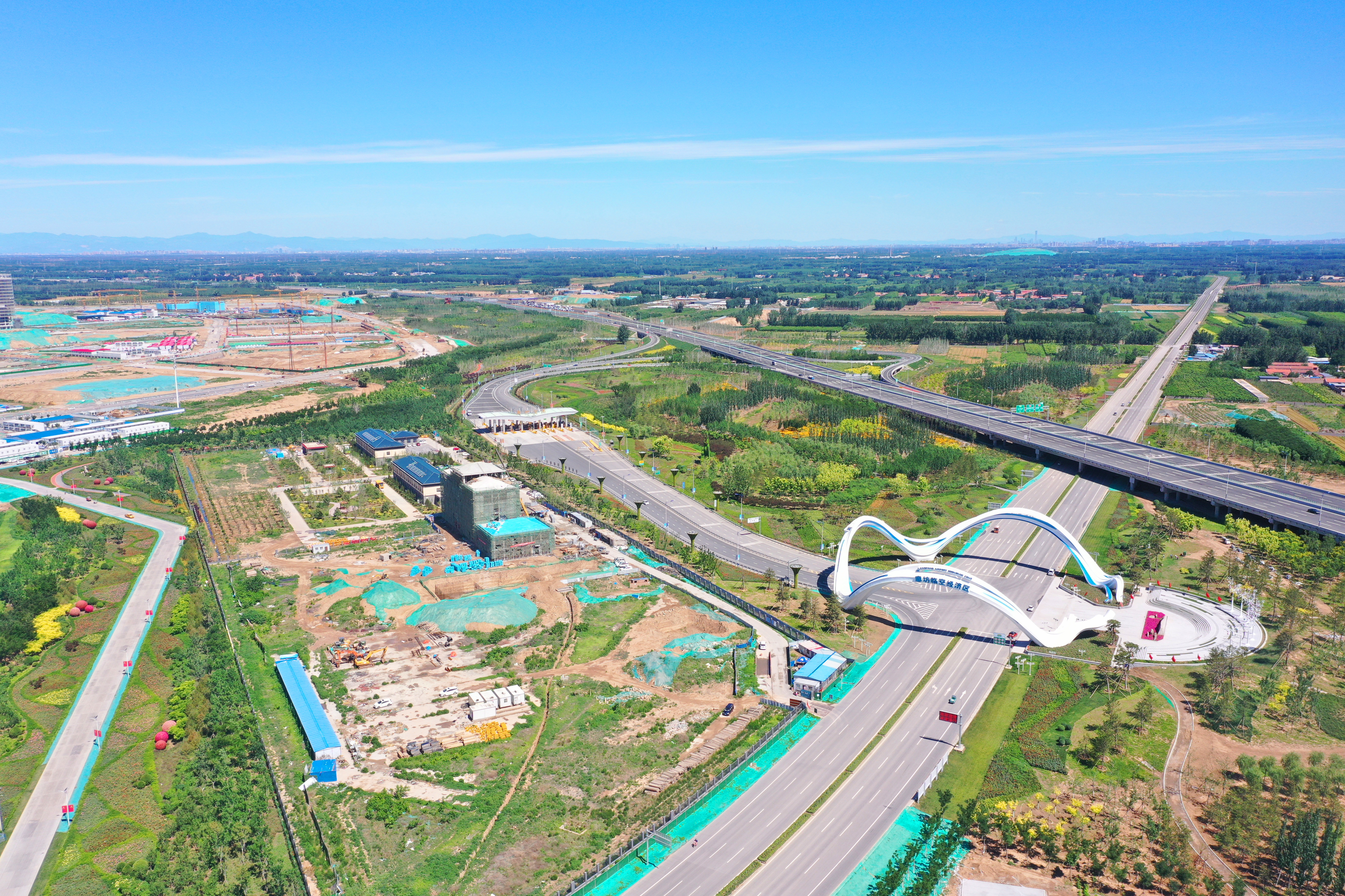 建設(shè)中的北京大興國(guó)際機(jī)場(chǎng)臨空經(jīng)濟(jì)區(qū)廊坊片區(qū) 圖片由廊坊日?qǐng)?bào)社提供