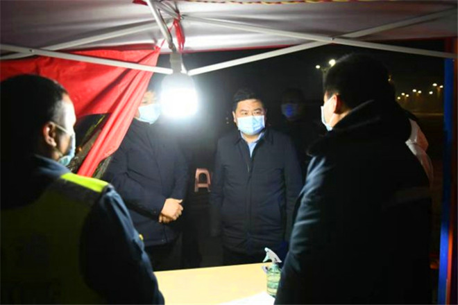 1月3日晚,鹿邑縣委書記李剛,縣委副書記、縣長郭俊濤帶領(lǐng)縣委辦、衛(wèi)健委、公安局、督查局、交通局等部門負(fù)責(zé)同志先后到鹽洛高速鹿邑西站、老子故里站疫情防控卡點,實地檢查指導(dǎo)疫情防控工作??h委常委、統(tǒng)戰(zhàn)部部長史凱歌,副縣長翟杰,縣政府領(lǐng)導(dǎo)成員谷長征一同檢查。③2