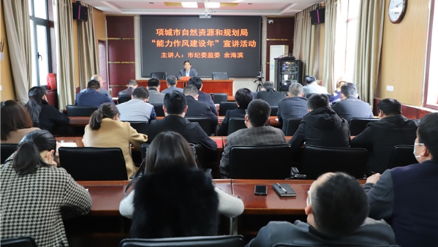 近日,項(xiàng)城市自然資源和規(guī)劃局開展“能力作風(fēng)建設(shè)年”主題宣講活動(dòng),特邀請項(xiàng)城市紀(jì)委監(jiān)委宣傳部宣講師余海濱前來授課。