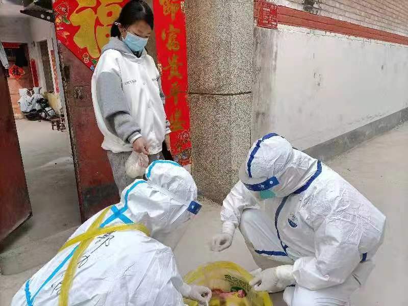 到達太康后,王群禮被分到了城關(guān)回族鎮(zhèn)封控區(qū)進行入戶核酸采集,當(dāng)時的他也很緊張,認真地穿防護服,熟記采集核酸的每一個動作要領(lǐng),然后投身抗疫最前線。在入戶采樣的時候,王群禮發(fā)現(xiàn)有一個小女孩獨自在家,她每次聽到敲門聲都是先開一點縫,悄悄觀察外面,當(dāng)看到是防疫人員時,才慢慢打開門。“我可以看出她的恐懼和無助,不知道她晚上怕不怕,會不會做飯,問她怎么吃飯,她也不說話,我心里很不是滋味?!睆哪翘扉_始,王群禮每次入戶采核酸的時候,就幫她帶點吃的,王群禮會把他的早餐留給她,還把自己的水果、零食也都送給她。