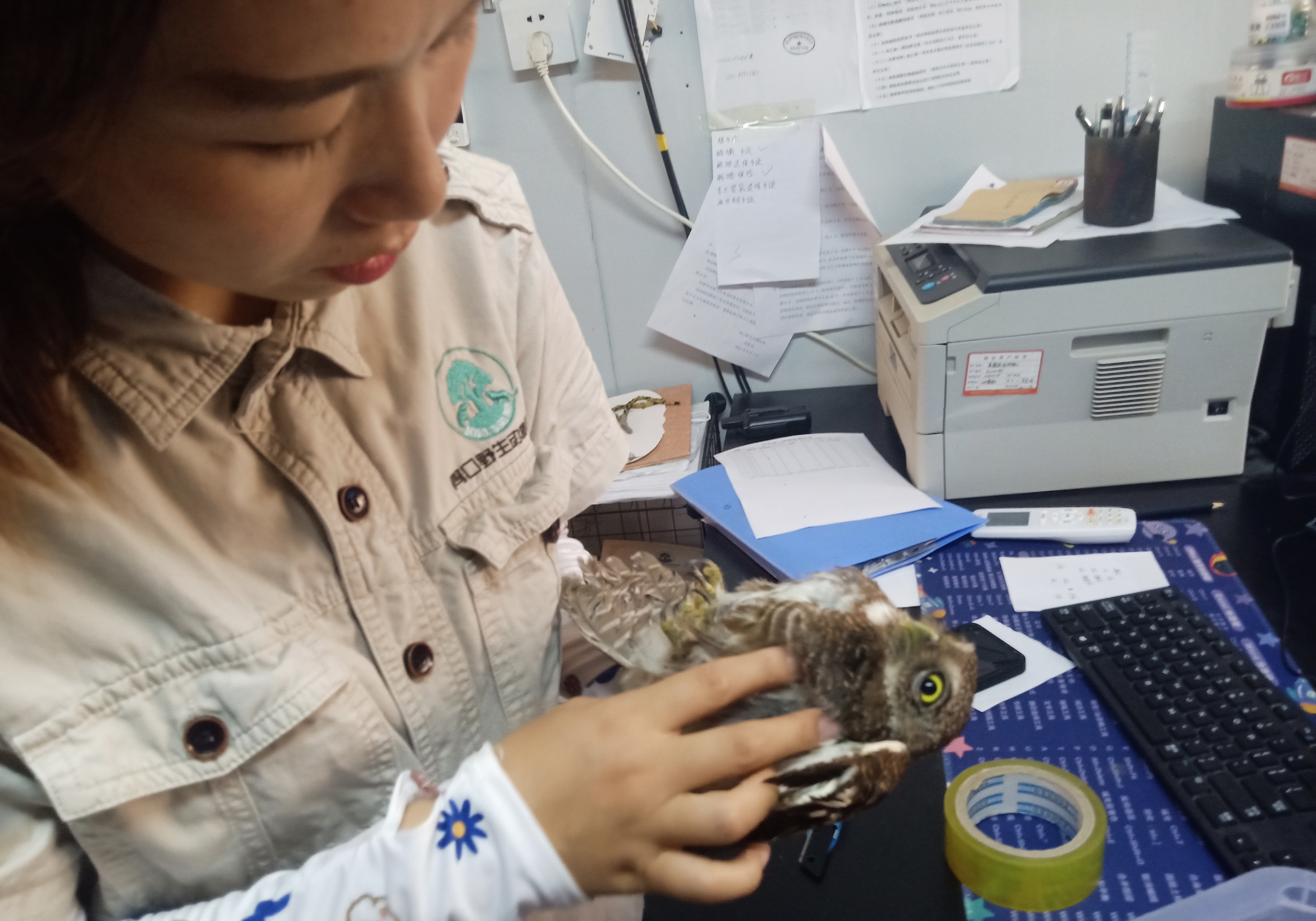 周口市野生動物救護中心專業(yè)人員楊露露對這只斑頭鵂鹠進行檢查傷情后說:“這只斑頭鵂鹠內(nèi)傷嚴重,需要治療一段時間才能放歸大自然?!?/p>
