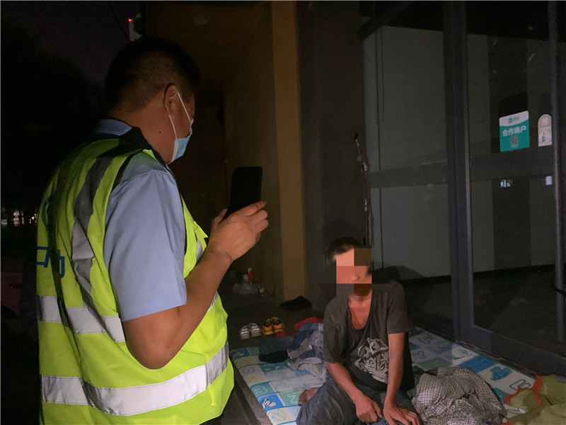 當日晚8時許,在市中心城區(qū),參與救助人員由市民政局出發(fā),對市區(qū)內(nèi)的五一文化廣場、中州大道大橋涵洞、周口公園等流浪乞討人員較為集中的場所進行巡查勸導,并在廣場、汽車站附近向來往市民發(fā)放求助宣傳單。救助人員巡查至中州大道與蓮花路交叉口西北角時,發(fā)現(xiàn)一間商鋪門口正躺著2個成年人和4個孩子?!澳銈兝洳焕??你們從哪兒來的?我們把你們送回家吧……”救助人員向流浪人員問道??粗@些未成年的孩子,救助人員將救助物資送給流浪人員并心疼地問道:“孩子們,你們想上學嗎?這個年齡正是上學的時候啊?!绷骼说暮⒆咏舆^救助人員手中的救助物資,低聲道謝。