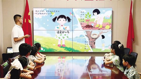 返鄉(xiāng)大學(xué)生志愿者魏柏宇向孩子們介紹珍稀鳥類的外形特征、生活習(xí)性與生存現(xiàn)狀。近日,鄲城縣自然資源局組織工作人員、返鄉(xiāng)大學(xué)生志愿者到該縣新城街道秀水社區(qū)開辦科普課堂,旨在通過生動(dòng)講解與互動(dòng)實(shí)踐,深化社區(qū)青少年對生態(tài)保護(hù)的認(rèn)識(shí)。記者 徐松 通訊員 陳吳陸 攝