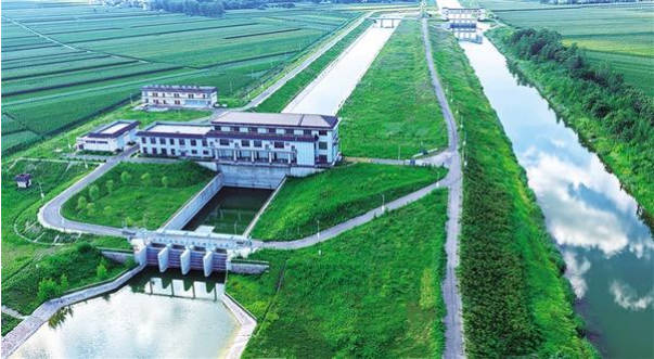 8月26日,“引江濟淮”河南源頭鄲城袁橋泵站水質(zhì)清澈,四周綠意盎然。