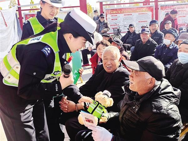 11月28日,民警將“交警小熊”送給一位村民。當(dāng)日,商水縣公安局交通警察大隊(duì)組織民警、輔警,攜手縣豫劇中心走進(jìn)湯莊鄉(xiāng)西趙橋村,開展“美麗鄉(xiāng)村行”交通安全宣傳活動(dòng),通過營(yíng)造宣傳氛圍,讓群眾自覺遵守法律法規(guī),安全文明出行。