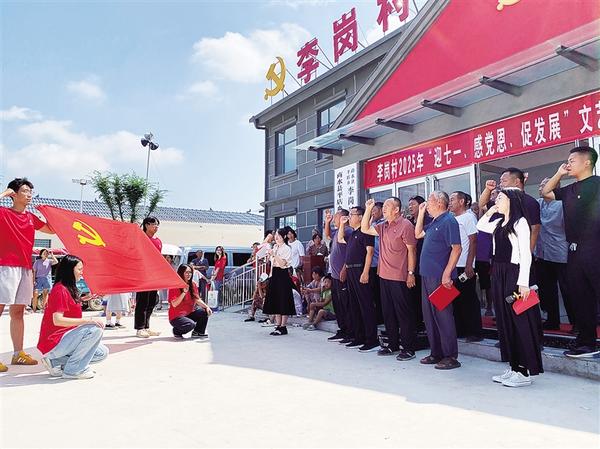 日前,黨員干部面向黨旗重溫入黨誓詞。商水縣平店鄉(xiāng)李崗村黨支部通過舉辦一場(chǎng)文藝匯演、共上一堂黨課、表彰一批優(yōu)秀黨員、重溫一次入黨誓詞等活動(dòng),慶祝中國(guó)共產(chǎn)黨成立104周年。